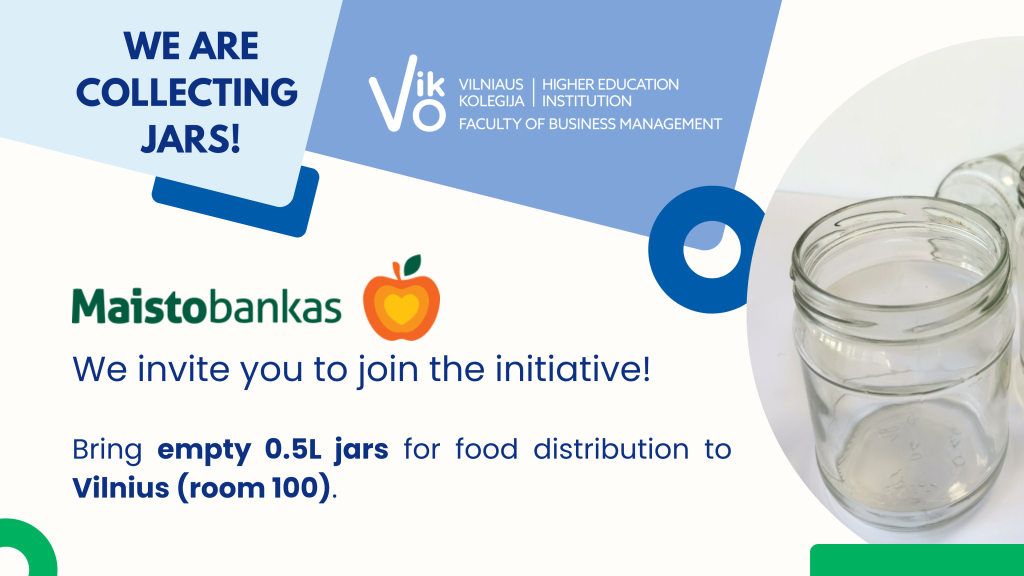 The Corporate Social Responsibility working group at the Faculty invites the entire Faculty community to collect empty 0.5 L screw-top jars, which will be used by “Maisto bankas” to distribute food to those in need.