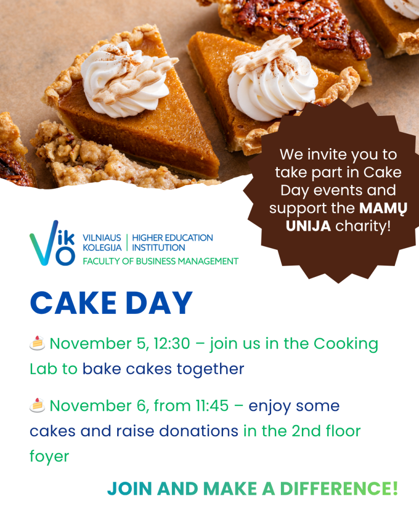 On November 5th from 12:30 PM, we invite all students, lecturers, and administrative staff to gather in the Cooking Lab and bake cakes together! All necessary ingredients will be provided in the lab – just bring your creativity, enthusiasm, and a smile. 🍰